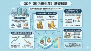 GDP(国内総生産)とは何か?名目・実質GDPの違いから、経済成長率、GDPデフレーターまで、ニュースを理解するために必須の基礎知識をわかりやすく解説。国の経済規模を知り、日本の経済状況を正しく読み解くための決定版ガイドです。